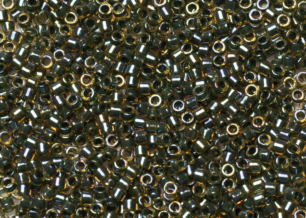 Бисер Япония MIYUKI Delica цилиндрический 11/0 5г DB-0273 лесной зеленый топаз радужный с цветной линией